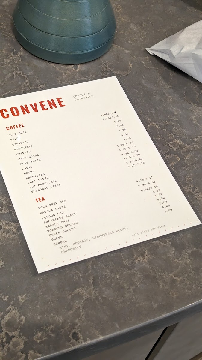 Convene is not just a café; it’s a haven for remote workers, offering comfortable seating, ample electrical outlets, and an atmosphere buzzing with creativity. With excellent service and a menu that leaves you wanting more, it’s clear why regulars keep returning. Whether you're settling in for a work session or catching up with friends, Convene's welcoming vibe and delicious offerings will make you feel at home.
